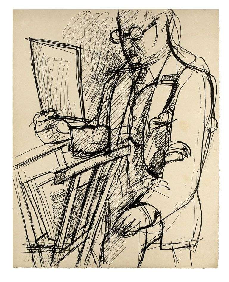 Portrait d'Henri Petiet (1894-1980) examinant une estampe