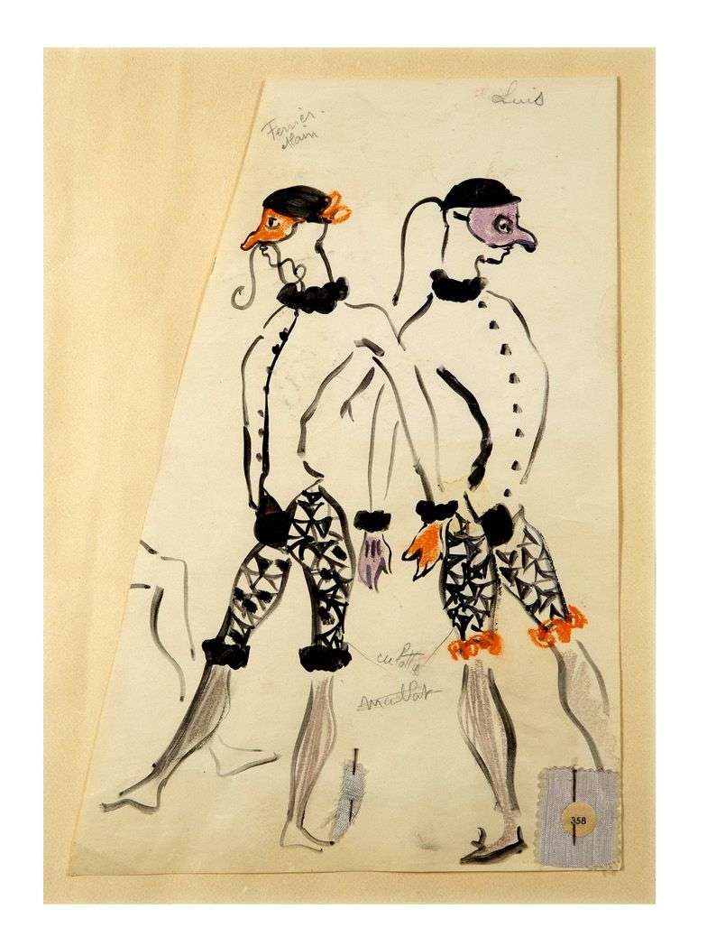 Projet de costumes pour deux personnages masqués, « Le marchand de Venise » de William Shakespeare