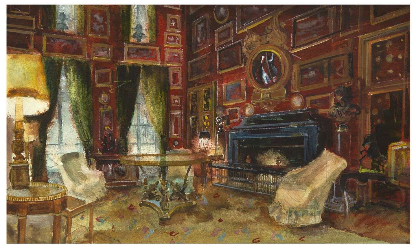 Gouache sur papier. Timbre « Atelier Janine & Jean-Claude Janet » [Lugt non décrit] et annotée « Groussay Salon Bibliothèque Janvier » au dos