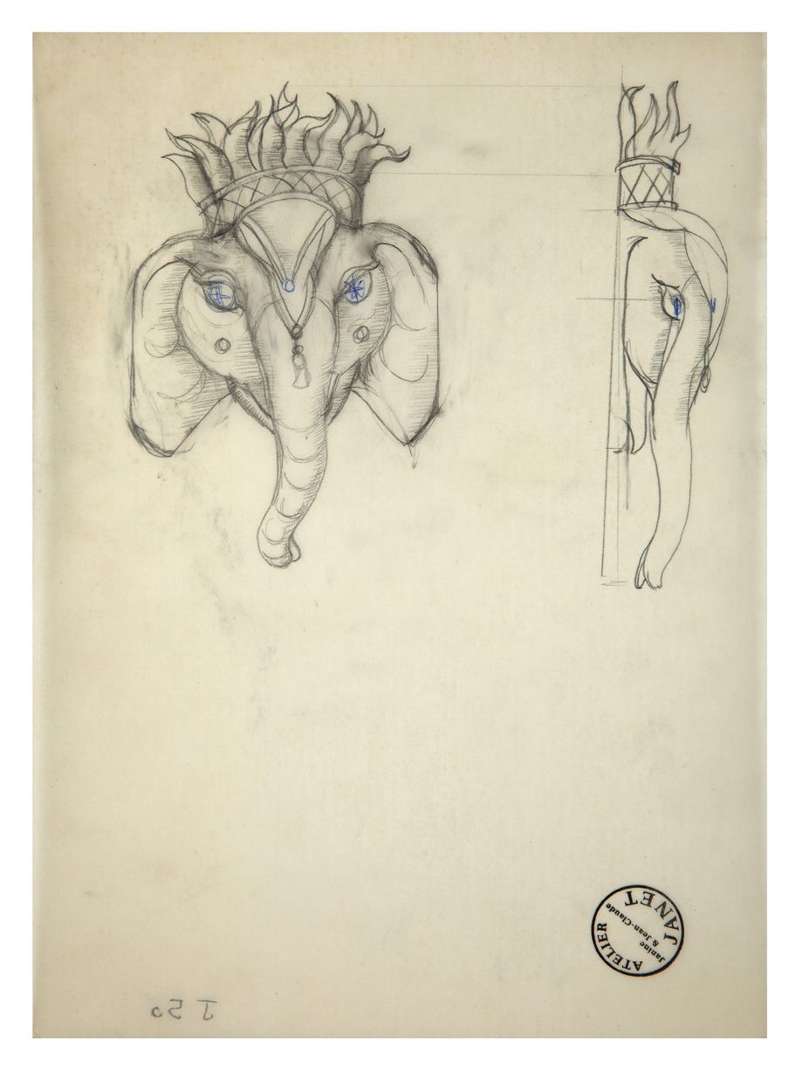 Mine de plomb et aquarelle sur calque Timbre « Atelier Janine & Jean-Claude Janet » [Lugt non décrit] au dos