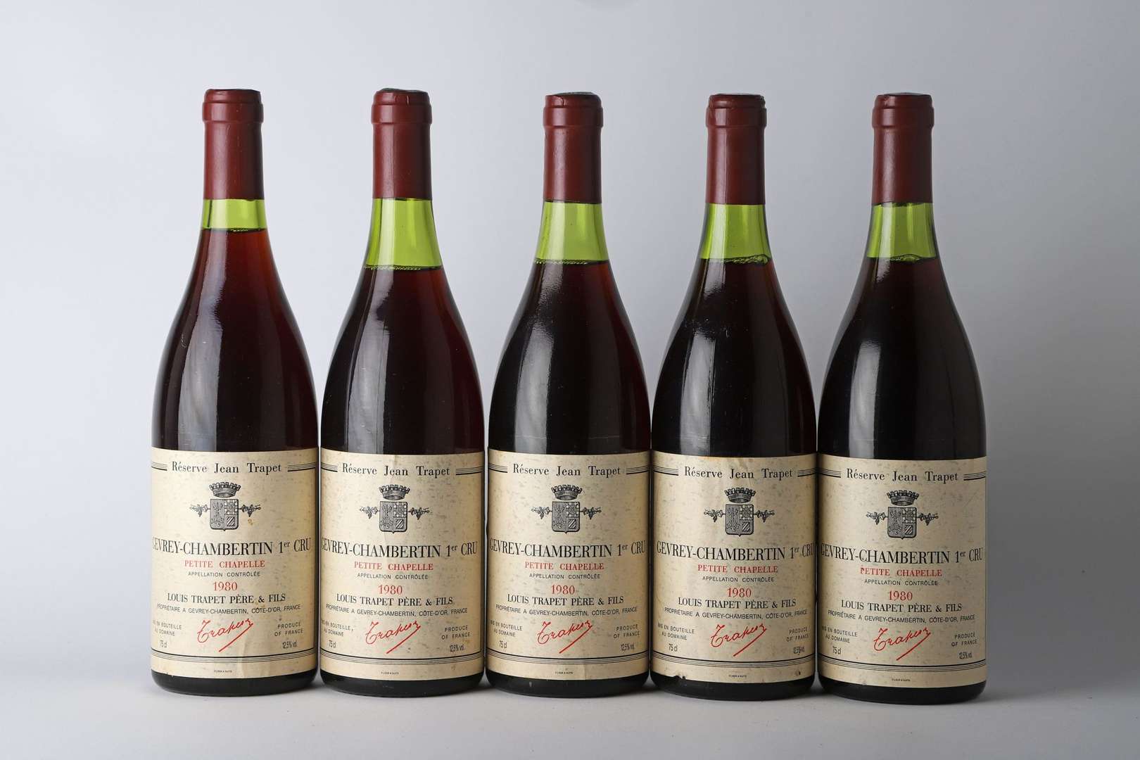 5 B GEVREY-CHAMBERTIN PETITE CHAPELLE RÉSERVE JEAN TRAPET (1er Cru) (2 à 2,8| 1 à 3 et 1 à 3,5 cm| e.t.h. dont 1 e.l.a.) - 1980 - Domaine Trapet
