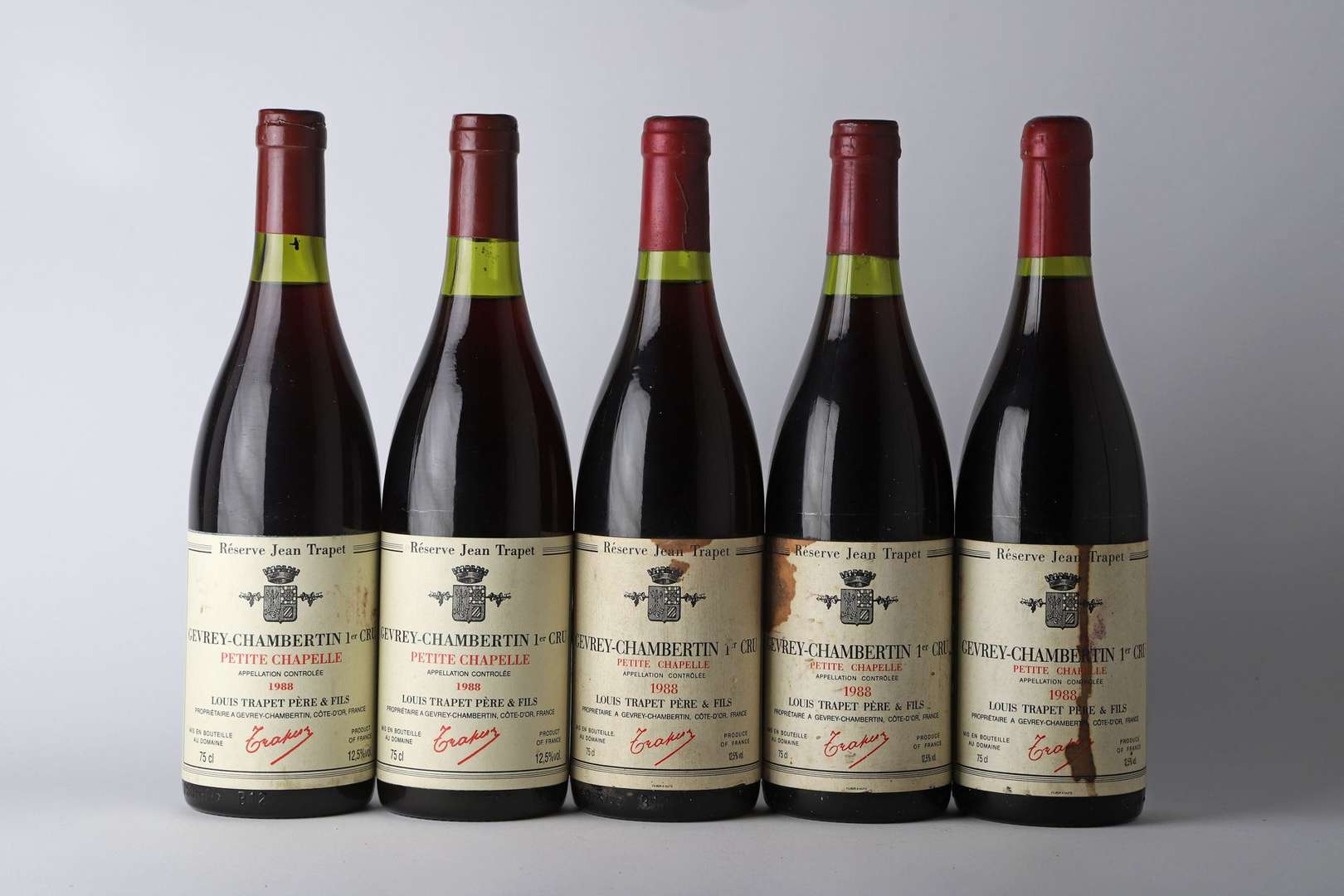 5 B GEVREY-CHAMBERTIN PETITE CHAPELLE RÉSERVE JEAN TRAPET (1er Cru) (4 e.t. dont 1 e.a| 1 capsule bombée) - 1988 - Domaine Trapet