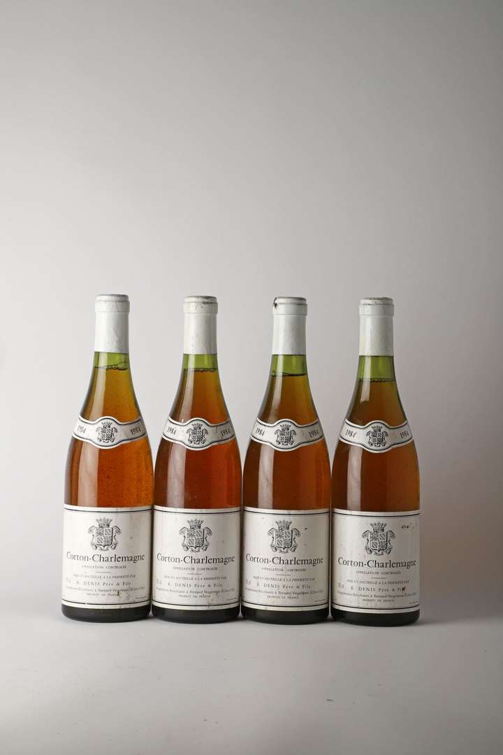 4 B CORTON-CHARLEMAGNE (Grand Cru) (e.t.h. légères dont 1 e.l.a| 2 clm.a| 1 c.a.) - 1984 - Domaine Denis P&F