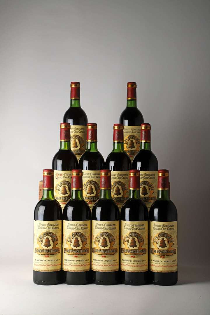 11 B CHÂTEAU L'ANGÉLUS (Caisse Bois d'origine de 12 remise à l'acquéreur (2 B.G| 3 T.L.B.+| 3 T.L.B| 3 H.E.+| 5 e.l.a| 5 e.a| capsules avec quelques marques| 2 c.l.a. bas de jupes) - 1981 - GCC1A Saint-Emilion