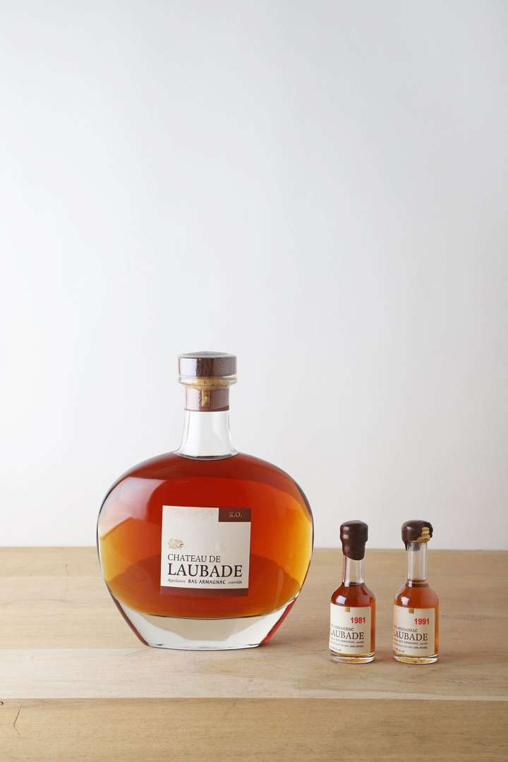 1 B BAS ARMAGNAC X.O 70 cl 40% (Coffret d'origine avec 2 mignonettes de 3 cl en 1981 et 1991) - NM - Château de Laubade