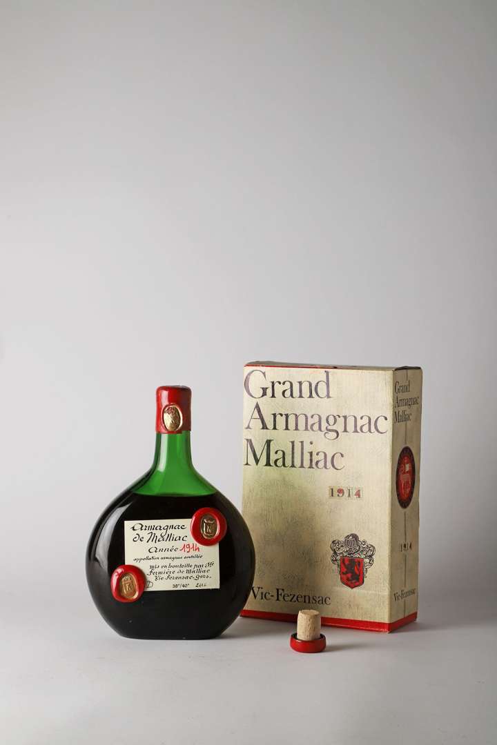 1 B GRAND ARMAGNAC 70 cl 38/40% (étui) (5,5 cm| forme basquaise) - 1914 - De Malliac