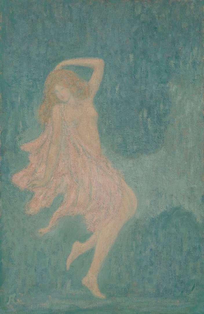 Jean-Francis Auburtin (1866 - 1930), artiste polymorphe qui va bien au-delà du chantre de la Normandie que la critique veut parfois en faire, explore avec passion le thème de la danse de 1902 à 1920. Proche du mouvement symboliste, il s'inspire de danseuses qui deviennent autant ses muses que des modèles qu'il partage bien souvent avec