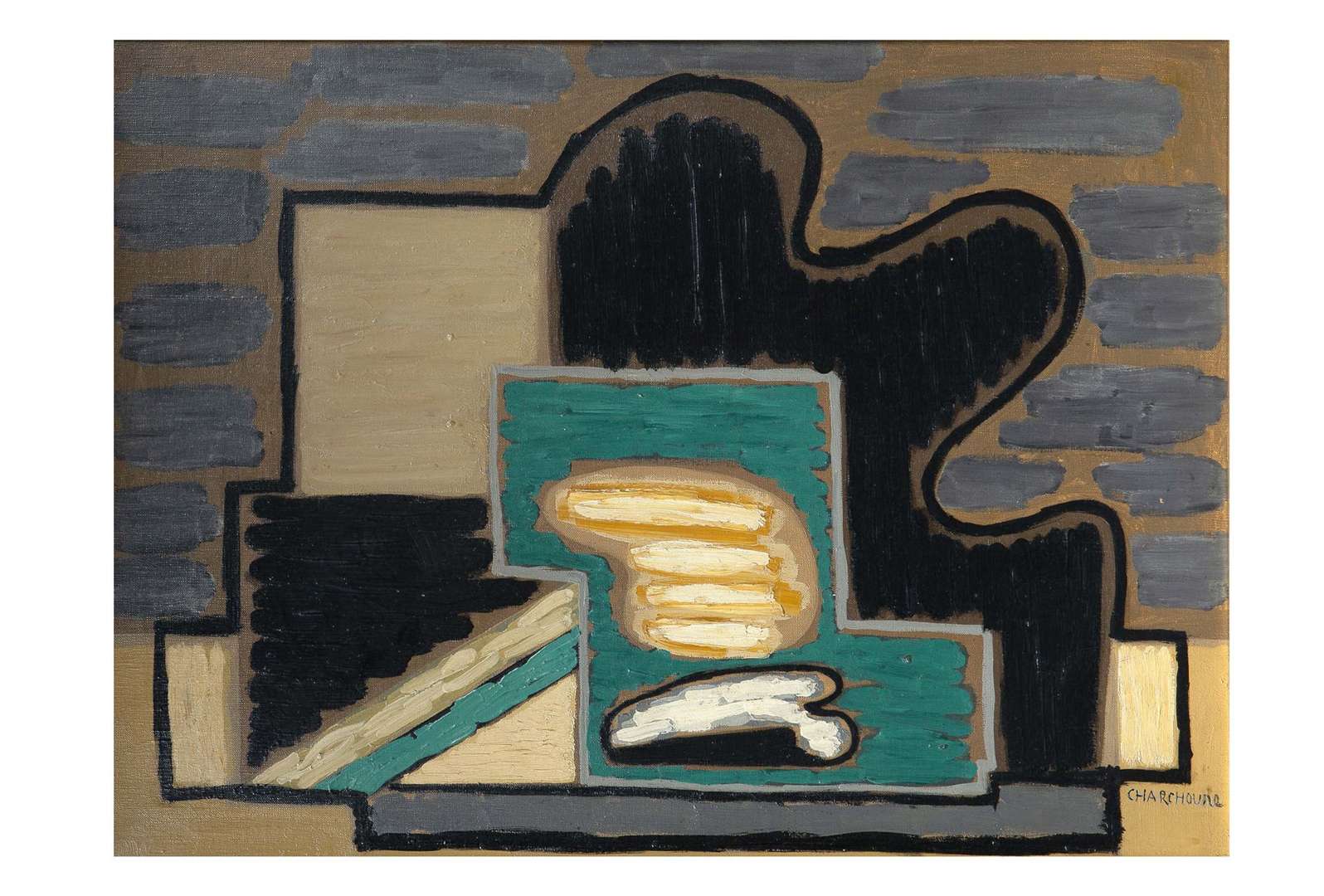«En 1925, Charchoune découvre la peinture d'Ozenfant en même temps que celle de Le Corbusier, il est attiré par ces natures mortes simples chargées d'émotion qui dégagent une atmosphère de paix intérieure tout en fascinant celui qui les regarde. Une amie russe, Nadia Khodossievitch, fréquente l'académie moderne de Léger, elle y enseigne tout comme Erik Olson, Ozenfant et quelques autres. Nadia Khodossievitch est alors la compagne du peintre polonais Grabowski, elle épousera Fernand Léger en 1950 après la mort de la première épouse de ce dernier. Nadia est très proche de Charchoune, ils parlent ensemble des recherches des deux fondateurs de “L'Esprit Nouveau”, Ozenfant et Le Corbusier, qui depuis se sont fâchés et ont pris des distances l'un par rapport à l'autre. En 1926, Charchoune fait plusieurs rencontres capitales par l'intermédiaire d'André Salmon et Georges Waldemar, Jeanne Bucher tout d'abord qui va l'exposer dans sa galerie et André Level, découvreur de nombreux talents, collectionneur et marchand propriétaire de la très célèbre Galerie Percier où exposent déjà : Max Jacob, Picasso, Marcoussis, La Fresnaye, Marie Laurencin, Dufy. Il y rencontre André Warnod, Wilhelm Uhde, son ami René Rimbert, Florent Fels et bien d'autres. André Level devient son premier grand marchand avec lequel il restera jusqu'en 1933. Serge Charchoune, avec Level, est rassuré, c'est la première fois qu'il peut peindre en toute tranquillité. Level dispose d'une clientèle solide, régulière, il organise d'impor tantes expositions, Charchoune sort de la misère, peut acheter du matériel, des toiles plus grandes sur lesquelles il va s'épanouir et entamer une production capitale. Il commence sa plus belle période, la période puriste, une période majeure dans l'oeuvre de l'artiste. Un an plus tard, Nadia Khodossiévitch le présente à Amédée Ozenfant et c'est pour Charchoune une véritable révolution intellectuelle. Il dira plus tard de cette rencontre : “Je crois bien que je n'en suis pas sorti indemne.” À l'Académie moderne, Charchoune fait la connaissance de deux scandinaves, Erik Olson, qui y enseigne, Otto Gustav Carlsund inscrit lui en tant qu'élève. Les deux artistes suédois deviendront ses amis et resteront fidèles bien des années plus tard. Erik Olson l'aidera dans les années 30 en lui achetant des tableaux alors que la crise de 29 laisse des séquelles dramatiques dans le marché de l'art. Olaf Osterblom rejoint également l'Académie moderne de Léger et participe au mouvement puriste. Cette académie contribue à étendre l'influence du purisme auprès de la jeune génération d'artistes qui s'installent à Paris.
