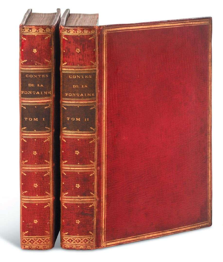 ÉDITION DITE DES «FERMIERS GÉNERAUX», ET LE CHEF-D'OEUVRE D'EISEN. Elle est ornée de 2 portraits gravés par Ficquet, celui de La Fontaine d'après Rigaud, celui d'Eisen d'après Vispré et de 80 figures hors texte par Eisen, gravées par Aliamet, Baquoy, Choffard,