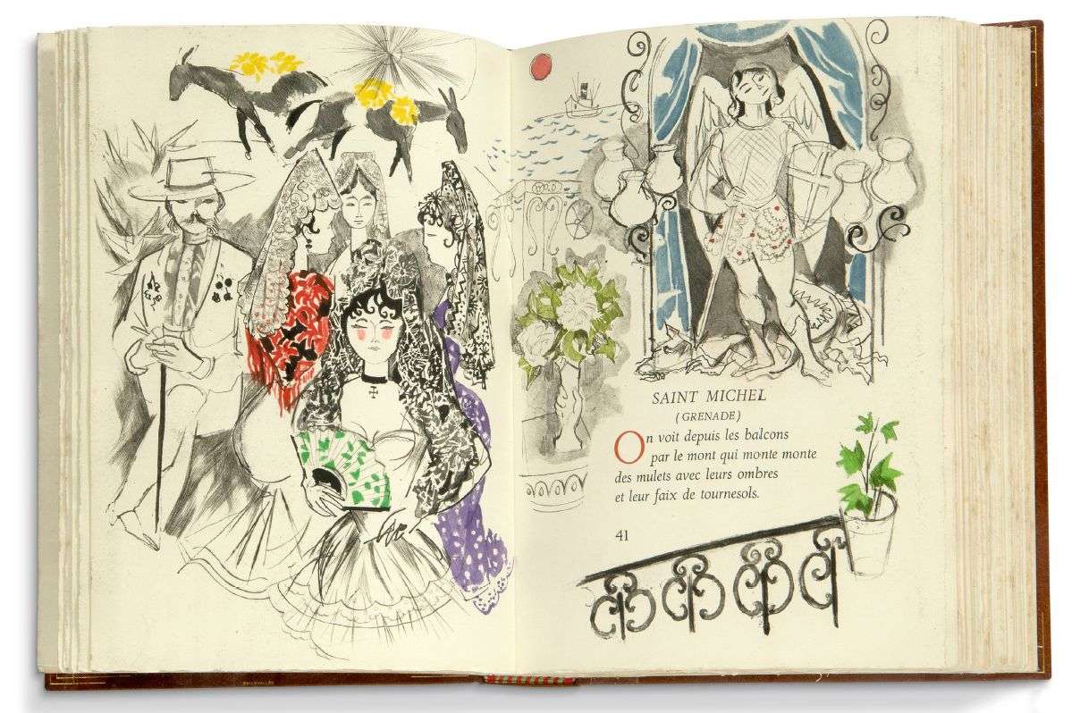 Premier tirage des 50 exemplaires numérotés avec un frontispice tiré sur soie et une suite en noir (remarques). 16 gravures sur cuivre en couleurs hors texte d'Emilio Grau-Sala, dont 15 à double page.