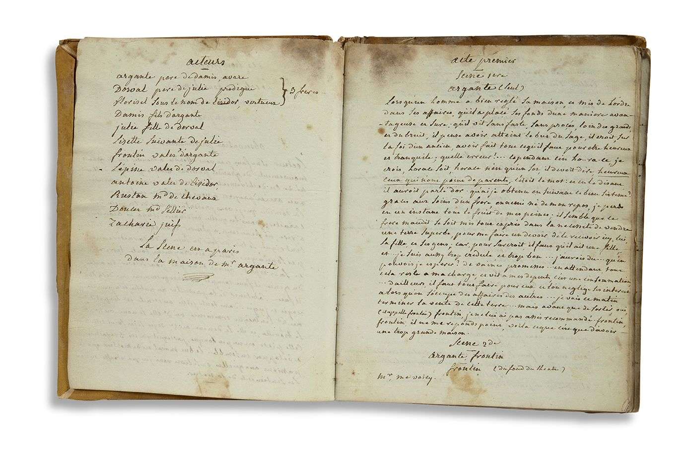 Le manuscrit présente quelques ratures et corrections, dont une par collette fixée sur la version primitive. Il s'ouvre sur une «Observation préliminaire : «Lecteur, il ne faut pas vous attendre a trouver icy de grands mouvements, de grandes passions, beaucoup de jeux de theatre, ni de ces déchirements et de ces reconnoissances amenées avec art et propres a vous faire fondre en larmes. La comedie que je vous presente est une de ces pieces de caractere dans lesquelles dordinaire il n'y a ni beaucoup a rire, ni beaucoup a pleurer, et ou toute l'action, toute l'intrigue se tire du fond du sujet, et du caractere des personnages. Celle cy est vrayment toute terre a terre, et sans esprit, quand on n'a pas, pour s'élever, les ailes du genie, il faut ramper, et consequemment, me dira ton il faut s'abstenir de la presenter au public | cela peut etre, voyés et jugés. Dans toute pièce, au 1er acte est l'exposition au 2nd l'intrigue commence, au 3e elle se noue, au 4e elle se brouille, et elle se denoue au 5e, voyés si j'ai suivi cette marche. Cette piece est un peu longue, parce qu'il y a icy 3 caracteres a developper ensemble. Le but moral est de montrer que les passions auxquelles on se livre vont jusqu'a etouffer en nous les sentiments de la nature».
