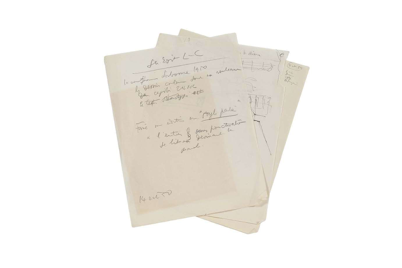 4 NOTES autographes, dont une avec croquis, vers 1950-1951 | 4 pages in4 et 1 page in8.