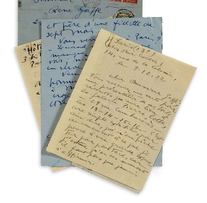 3 L.A.S. «Miró», Paris 1931 - 1932, à René GAFFé à Bruxelles | 5 pages in-8 et 2 pages petit in-4, 2 enveloppes.