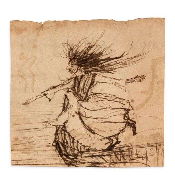 Dessin aut. «La Sorcière». s.d. (1829). Dessin original, encre et plume (5,5 x 5,5 cm), encadrement sous verre.