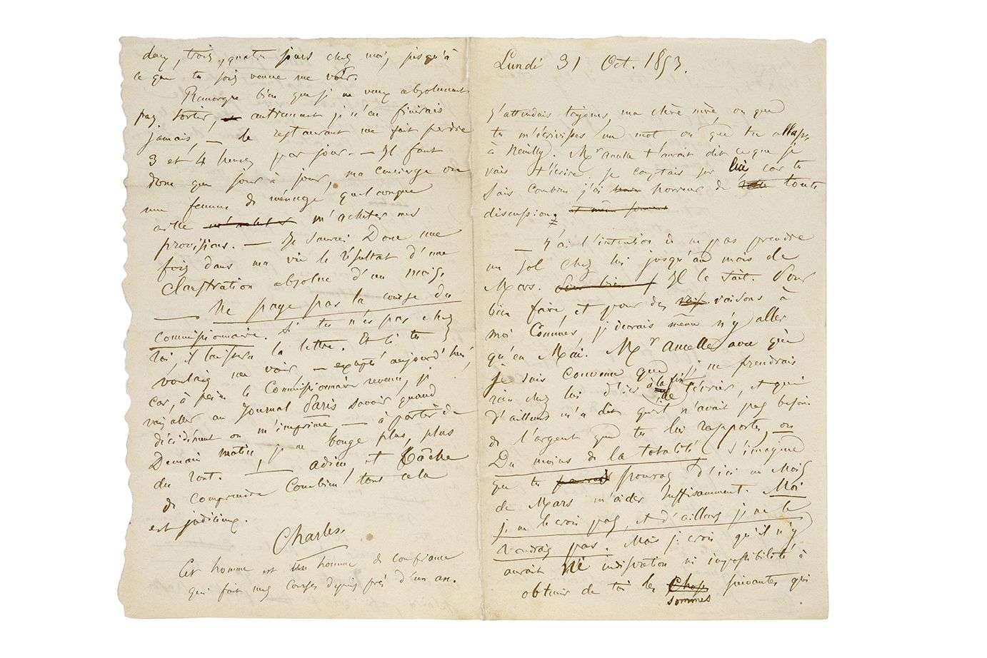 L.A.S. «Charles», [Paris] lundi 31 octobre 1853, à SA MÈRE Madame AUPICK | 4 pages in-8.