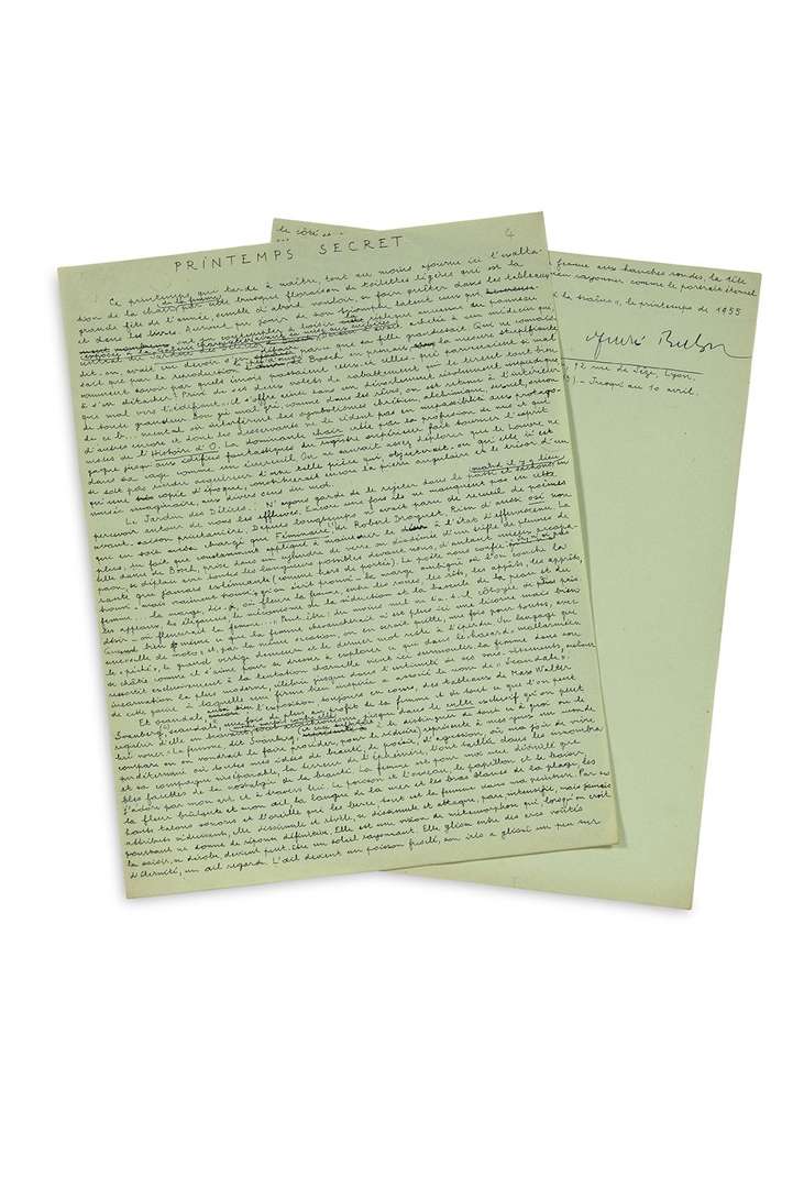 MANUSCRIT autographe signé, Printemps secret, 1955 | 1 page et quart in-4, d'une écriture serrée sur papier vert d'eau.