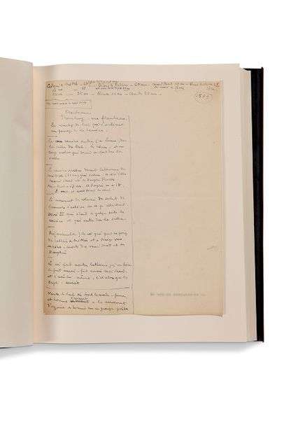 Manuscrit autographe du scénario accompagné de lettres et documents relatifs à la préparation du film S.l., [1944-1961], 83 feuillets in-4 autographes recto seul (scénario) | 4 feuillets in-4 et 2 feuillets in-8 autographes recto seul (lettres) | 1 feuillet in-4 manuscrit et 2 feuillets in-4 dactylographiés. L'ensemble monté sur onglets en 1 volume in-folio. Maroquin bordeaux, premier plat titré or, doublures et gardes de box gris souris (Loutrel).