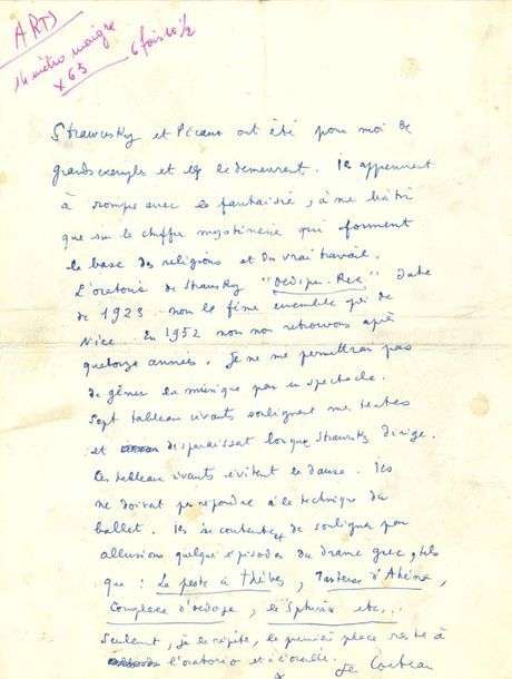 L'oratorio de Strawinsky OEdipus-Rex date de 1923. Nous le fîmes ensemble près de Nice.