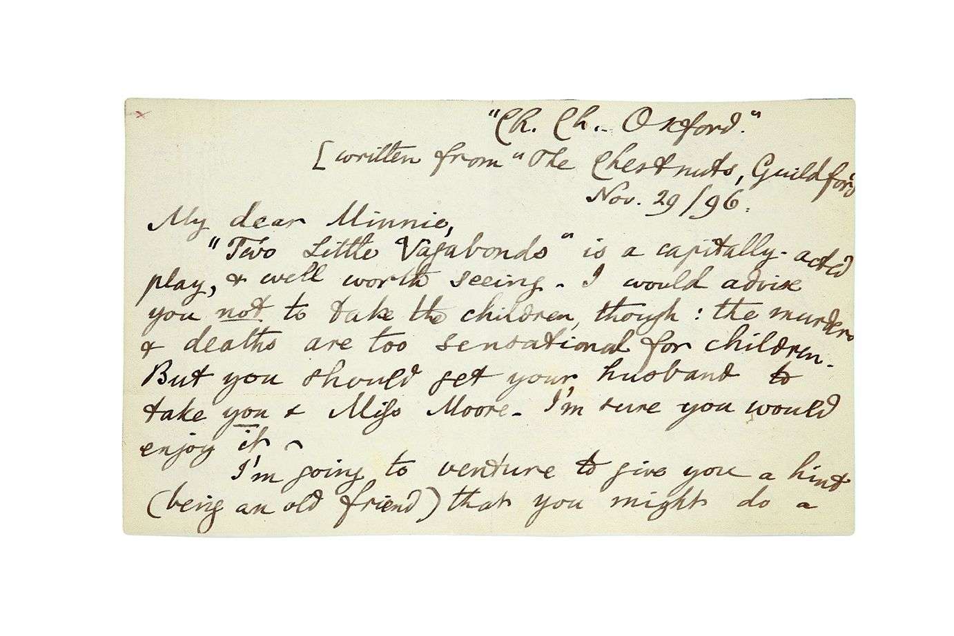 L.A.S. «C L. Dodgson», Guilford 29 novembre 1896, à «My dear Minnie» [Milicent Horatia MURDOCH] | 2 pages oblong in-8 | en anglais.
