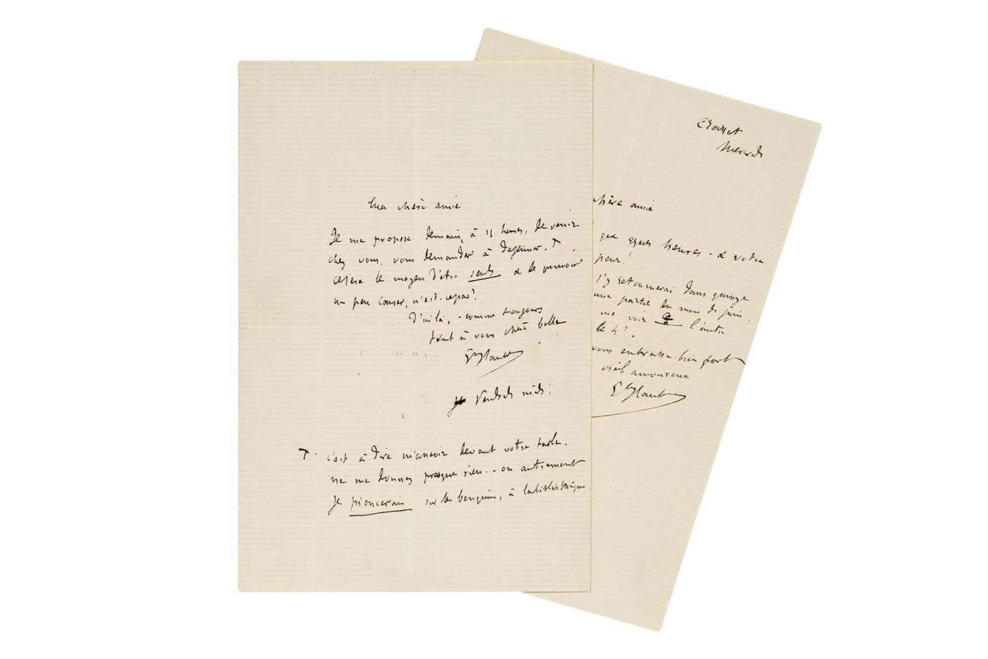 Paris que quelques heures, et «votre escalier m'a fait peur !». Mais il y retourne dans quinze jours, et compte y rester une partie du mois de juin. Il termine : «D'ici là, je vous embrasse bien fort. Votre vieil amoureux