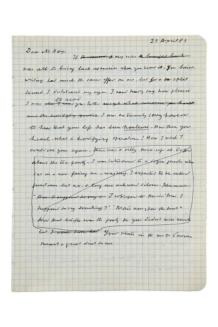 Cahiers d'écolier dans lesquels Julien Green a transcrit, de sa main, plus de 500 lettres ou messages qu'il adressa à ses correspondants à partir des années 1970. Dans les années 1970, après avoir fait son entrée à l'Académie française, l'écrivain avait pris l'habitude, occasionnelle semble-t-il, de garder une copie ou un brouillon (parfois signé de ses initiales) de certaines de ses lettres. Ces cahiers renferment les textes, parfois ébauchés, de plus de cinq cents messages et/ou lettres que l'écrivain adressa à divers destinataires, notamment Robert Gallimard, Marcel Jullian, Jean Mistler, Claude Lévi-Strauss, Robert Kanters, Pierre