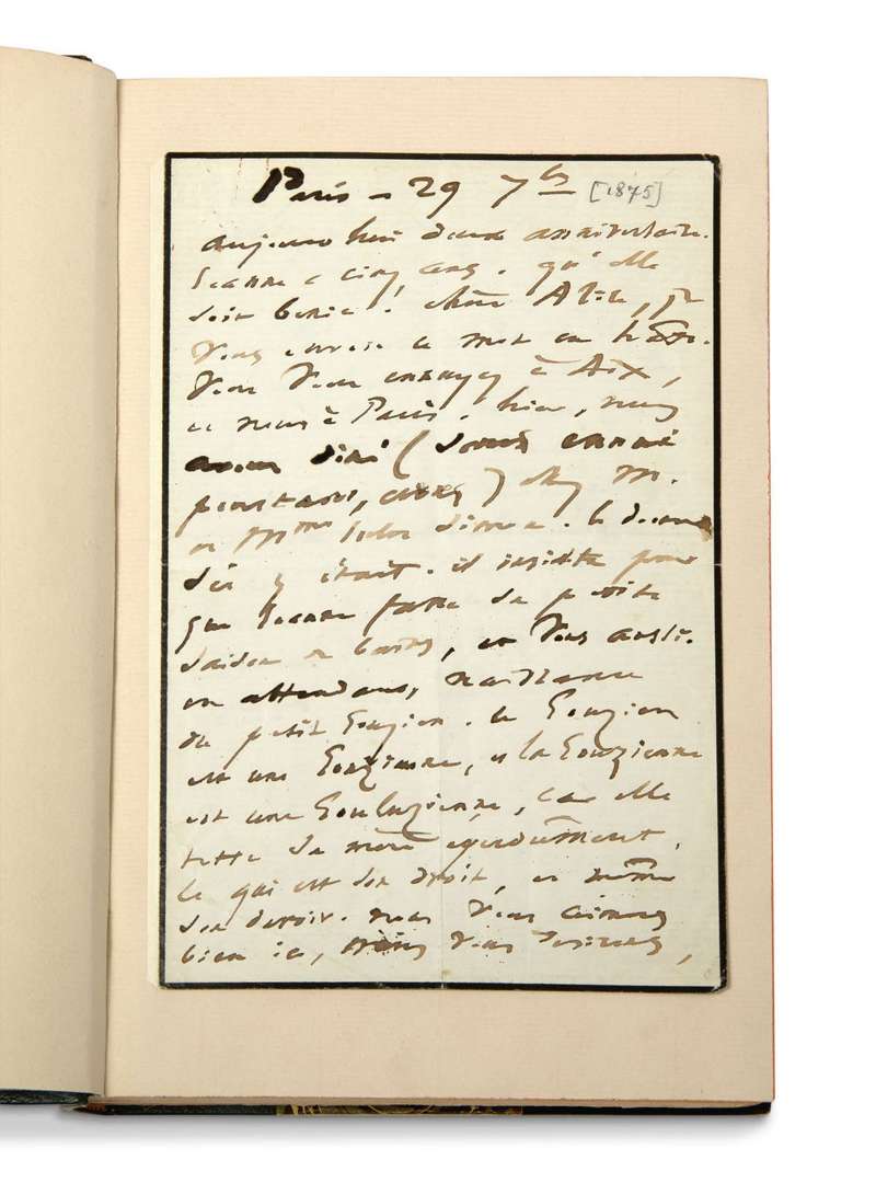 2. L.A.S. «Papapa» de V. Hugo à sa belle-fille Alice Hugo, mère des deux enfants, Paris, 29 septembre [1874 ou 1875] (2 pages grand in-8, petit deuil) : «Aujourd'hui deux anniversaires. Jeanne a cinq ans. Qu'elle soit bénie ! Chère Alice [...] vous vous ennuyez à Aix, et nous à Paris [...] naissance du petit Gouzien. Ce Gouzien est une Gouzienne et la