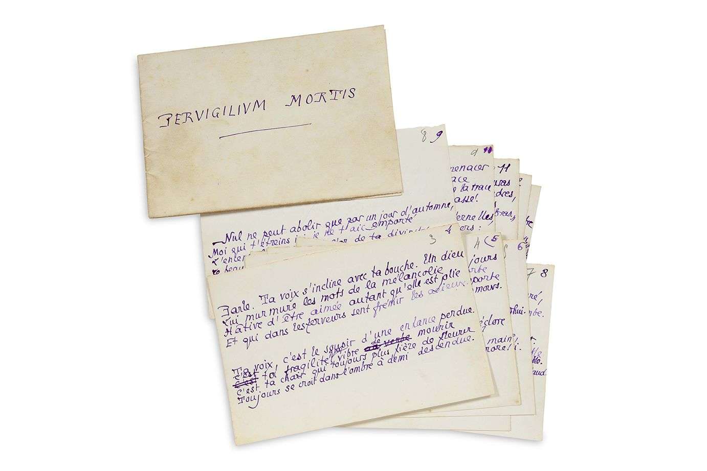 MANUSCRIT autographe (incomplet), Pervigilium Mortis, [décembre 1916] | titre et 10 pages oblong in-8 paginées 4-13.