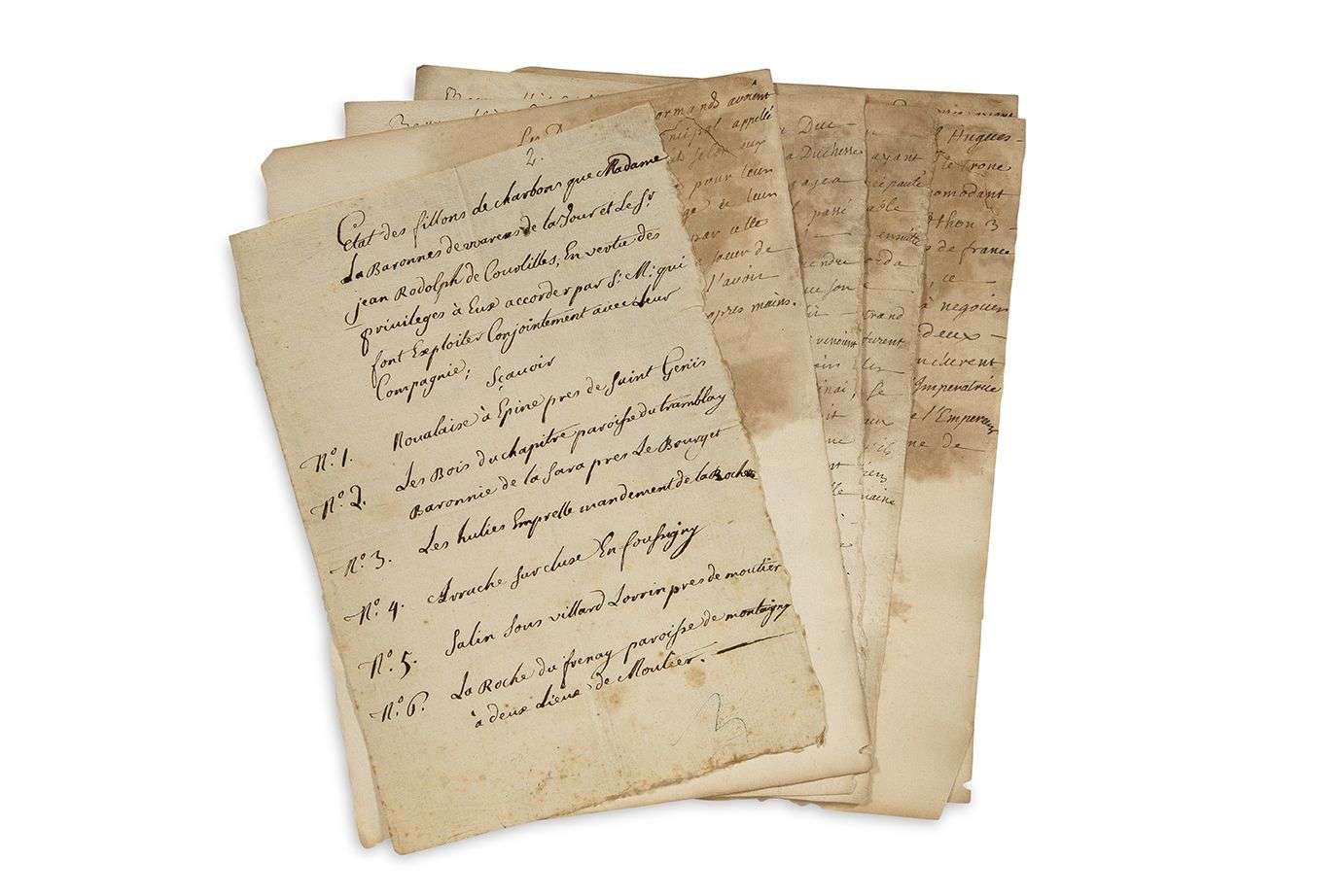 On joint un «État des fillons de charbons que Madame la Baronne de
