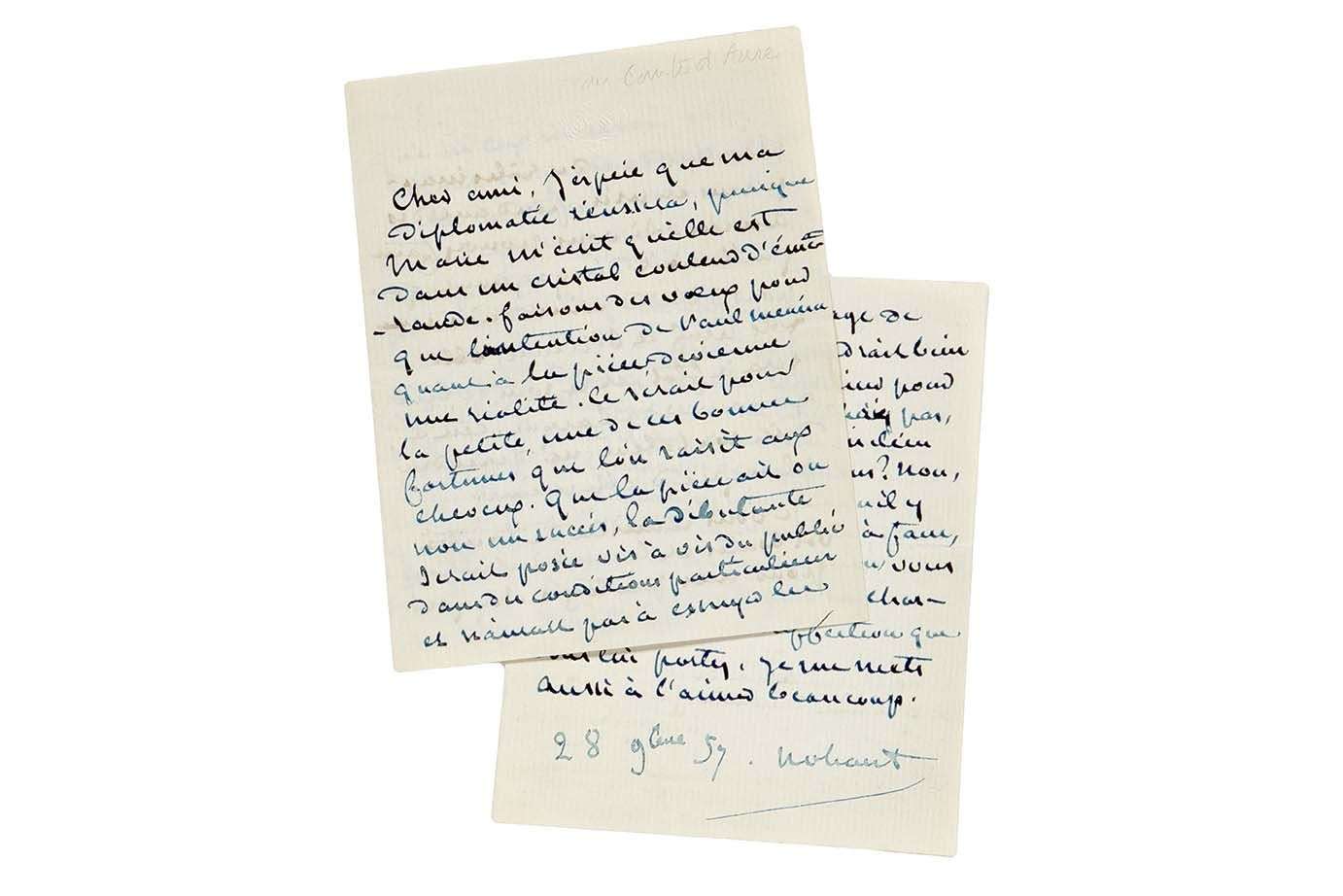 L.A.S. «G. Sand», Nohant 28 novembre 1857, à un ami [Antoine, comte d'AURE] | 5 pages in-12 à son chiffre, encre bleue.