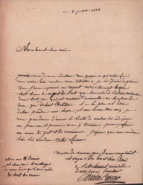 L.A.S. à un ami. S.l., 3 juillet 1828. 1 p. in-4.