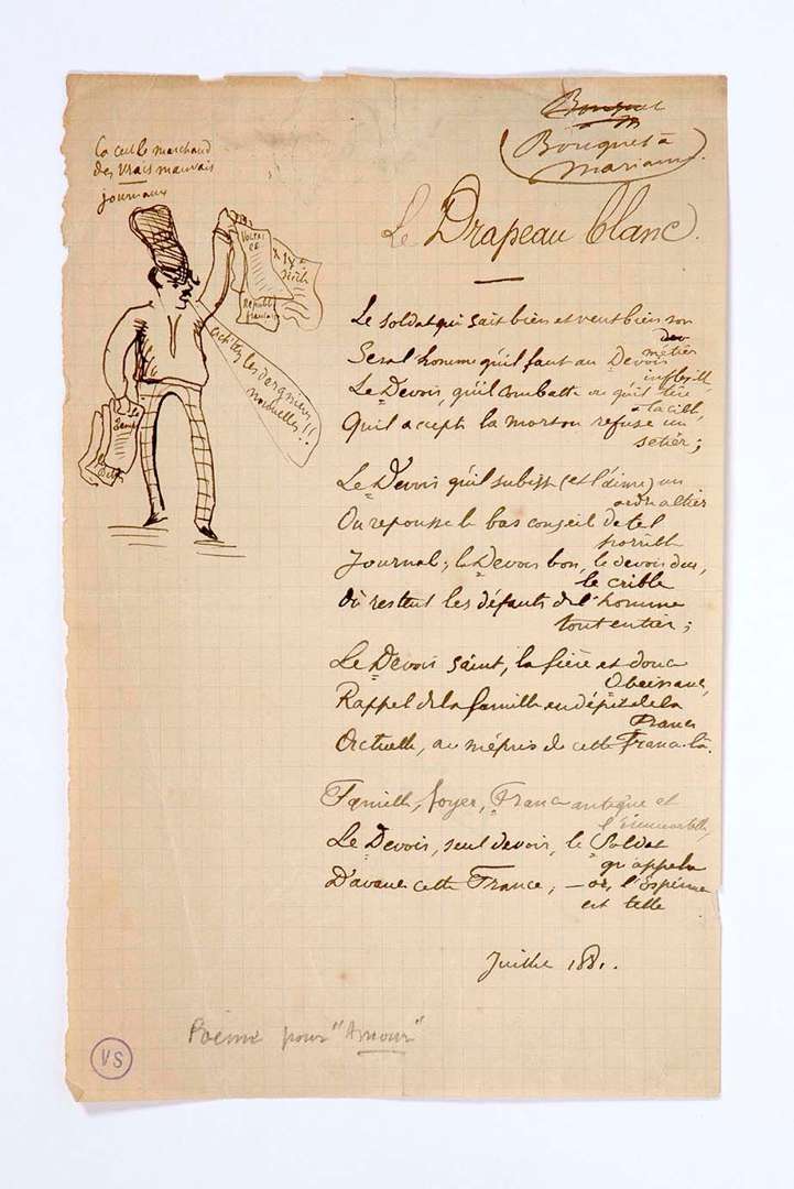 POÈME autographe avec DESSIN, Le Drapeau blanc, Juillet 1881 | 1 page in-8 sur papier quadrillé.