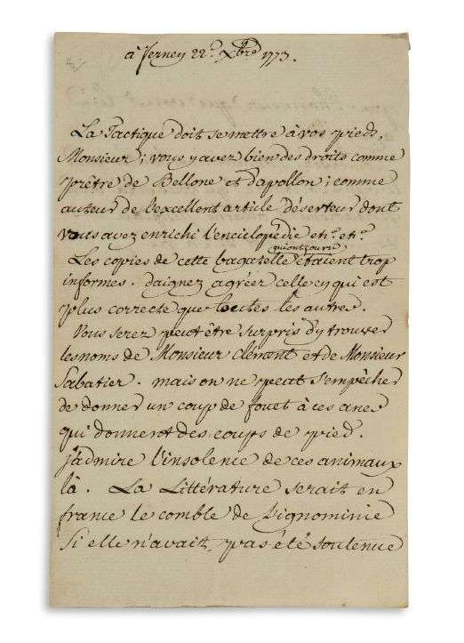 L.S. «V», Ferney 22 décembre 1773, à Jean-François de SAINT-LAMBERT | la lettre est écrite par son secrétaire