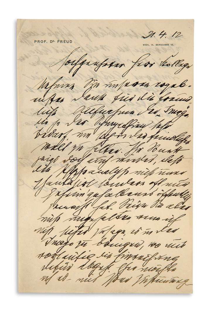 L.A.S. « Freud », Wien 21.IV.1912, à un collègue [Hugo SALUS] | 1 page et demie in-8 à son en-tête | en allemand.