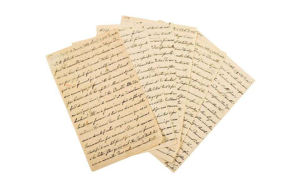 Cet ensemble regroupe quatre lettres de la correspondance amoureuse du Tsar Alexandre II à Catherine (Katia) Dolgorouki (1847-1922), témoins de cette extraordinaire histoire d'amour. Leur liaison débuta en 1866. Elle avait dix-huit ans, lui quarante-sept. En 1870, l'installation de Katia dans une chambre du Palais d'Hiver, au-dessus des appartements impériaux où résidait la Tsarine Marie Alexandrovna, fit un énorme scandale à la Cour. En 1872, elle lui donnait un fils, Georges, puis deux filles, Olga et Catherine. La Tsarine, depuis longtemps souffrante, mourut le 3 juin 1880, et quarante jours seulement après sa disparition, Alexandre fit de Catherine son épouse morganatique, lui conférant le titre de Princesse Yurievskaya. La vie légitime du couple fut de courte durée, car le Tsar fut victime d'un attentat à la bombe le 13 mars 1881. Ramené mortellement blessé au palais, il agonisait quelques heures plus tard dans les bras de Katia. Devenue veuve, la princesse Yurievskaya s'exila en France à Nice, où elle mourut en 1922, emportant avec elle sa précieuse correspondance que le nouveau Tsar Alexandre III avait tenté de récupérer pour la détruire.