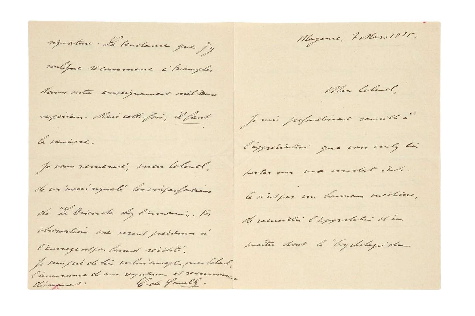 L.A.S. «C. de Gaulle», Mayence 7 mars 1925, au colonel Émile MAYER | 4 pages in-8.