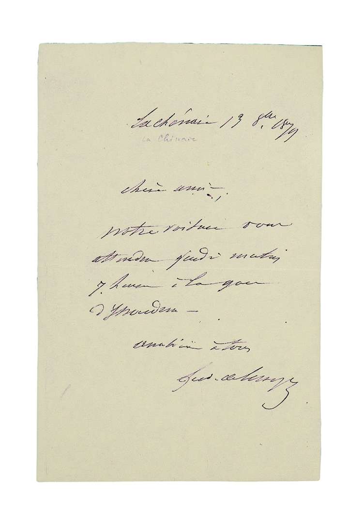 «Pour Palewski. Mike (?) prendra congé à 22 h 30. Je vous attends avec