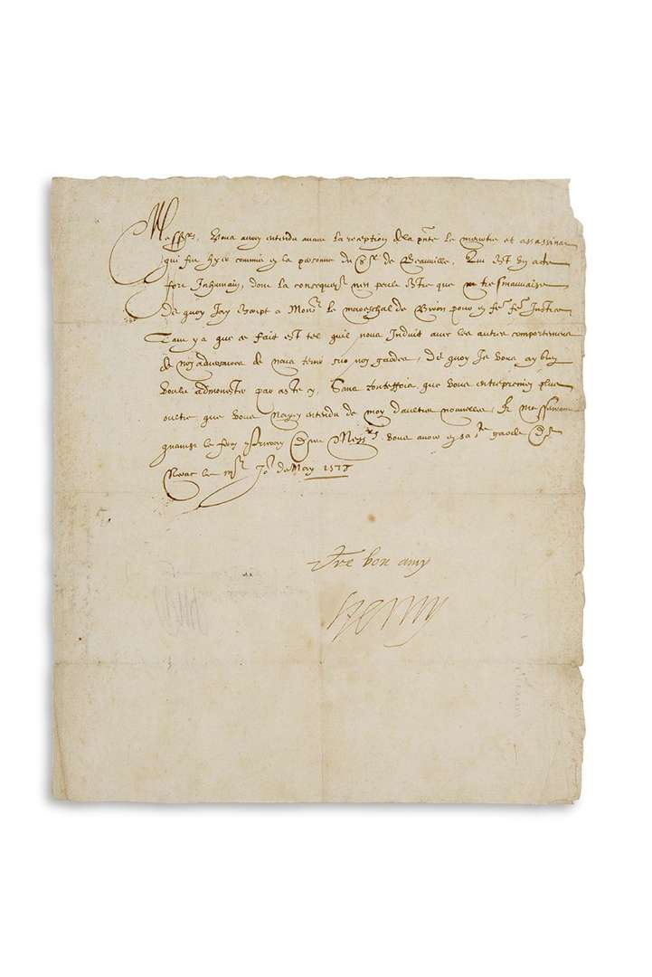L.S. «Vre bon amy Henry», Nérac 3 mai 1578, à «Messrs de la Religion reformée» de Sainte-Foy | 1 page in-4, adresse au verso.