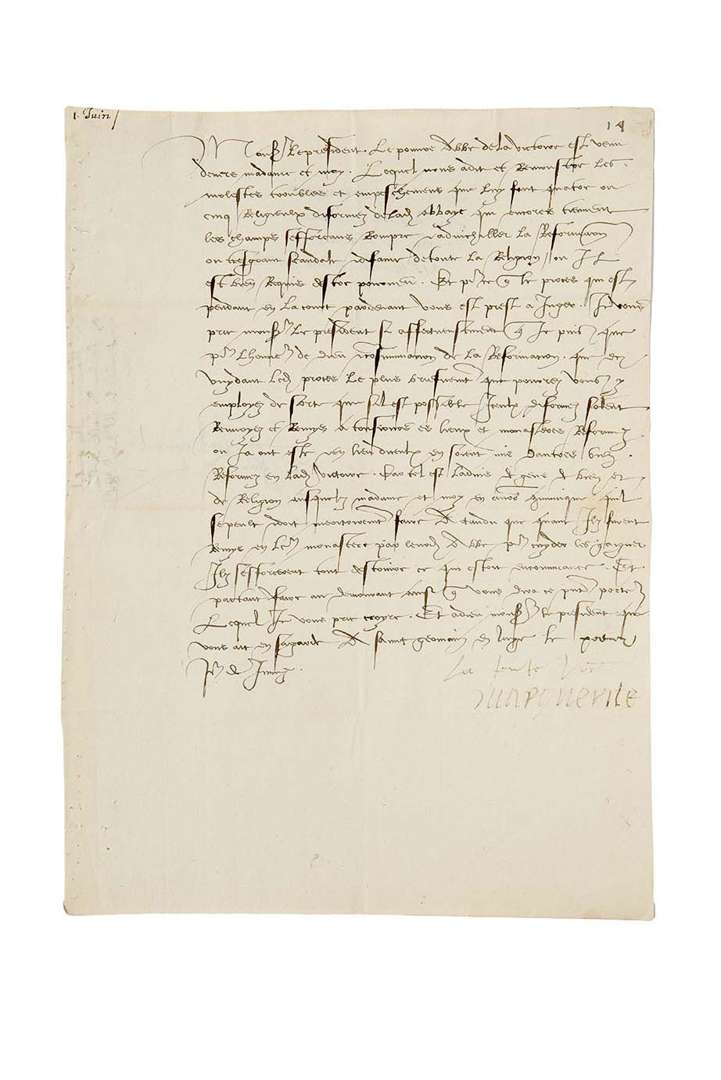 L.S. avec compliment autographe «La toute Vre Marguerite», Saint?Germain-en-Laye 1er juin [1523 ?], au Premier Président
