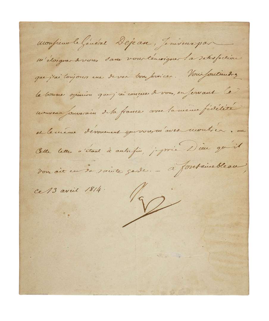 L.S. «Napoleon», Fontainebleau 13 avril 1814, au général DEJEAN | ¾ page in-4