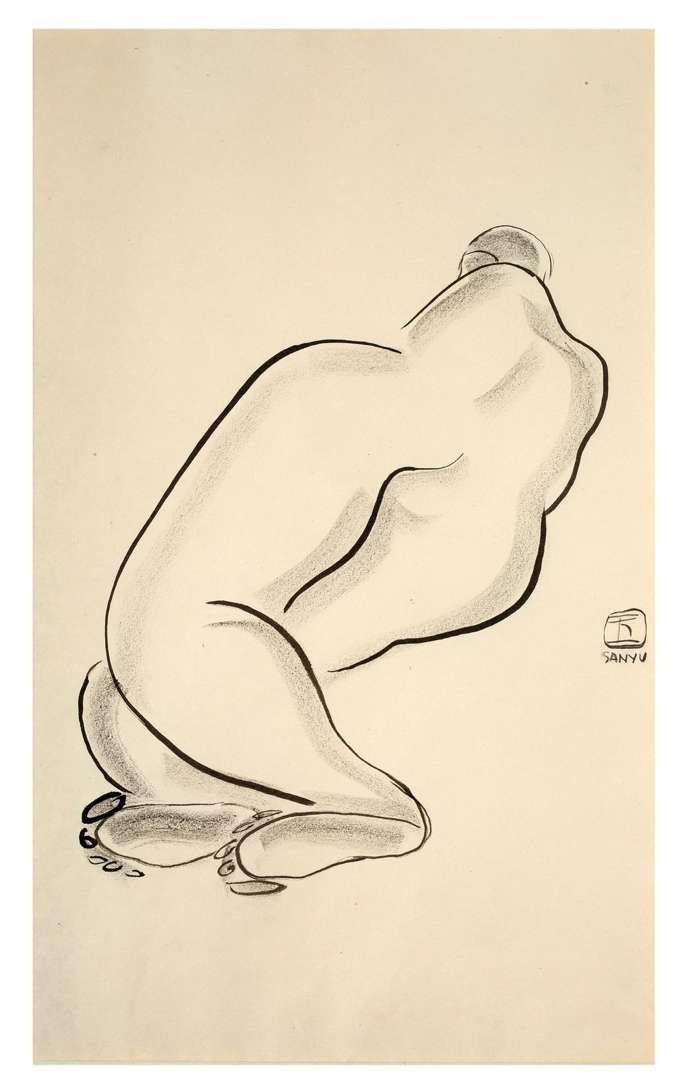Sanyu, de son vrai nom, Chang Yu, nait en 1901, dans la province du Sichuan, en Chine. Son père, peintre animalier spécialisé dans la représentation des chevaux et des lions, lui enseigne les rudiments de son art. Soutenu financièrement par son frère aîné, Sanyu suit à domicile les enseignements de Zhao Xi, maître calligraphe hautement réputé, et intègre, par la suite, l’Université de Shanghai. Il parfait enfin sa formation grâce à un programme de fin d’études, le menant successivement au Japon, en Allemagne et en France. Sanyu s’installe à Paris en 1913 et, contrairement à ses contemporains, il ne regagne pas la Chine. Il pousse ses recherches personnelles dans le cercle parisien qu’il considère stimulant. En conséquence, il n’obtient qu’une reconnaissance tardive de son oeuvre en Asie. Pluridisciplinaire, Sanyu parvient à se défaire du carcan traditionnaliste asiatique, et mène cet art aux portes de la modernité. Adepte des environnements d’apprentissage peu traditionnels, il multiplie les croquis de portraits d’individus qui l’entourent, réalise des aquarelles ainsi que des peintures à l’huile. Néanmoins, son thème de prédilection demeure le nu. Il découvre cette discipline à l’Académie de la Grande Chaumière, où l’enseignement se fait d’après modèle vivant.