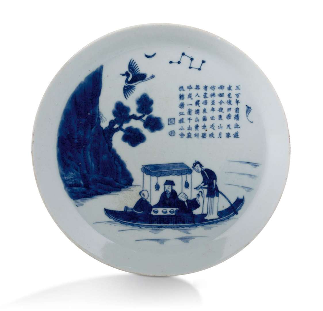 Plat en porcelaine bleu-blanc à décor du poème de l'Ode à la Falaise Rouge de Su