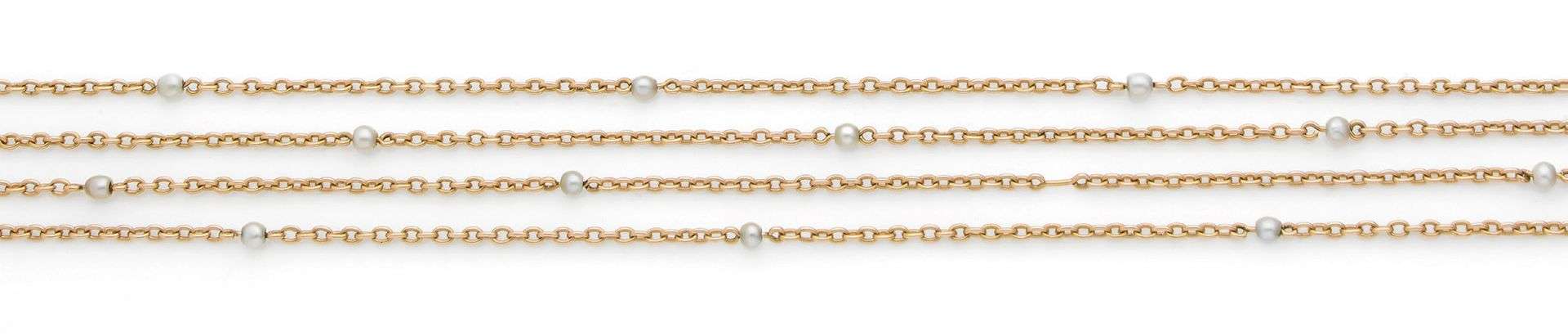 SAUTOIR Or 18k (750) ponctué de perles fines