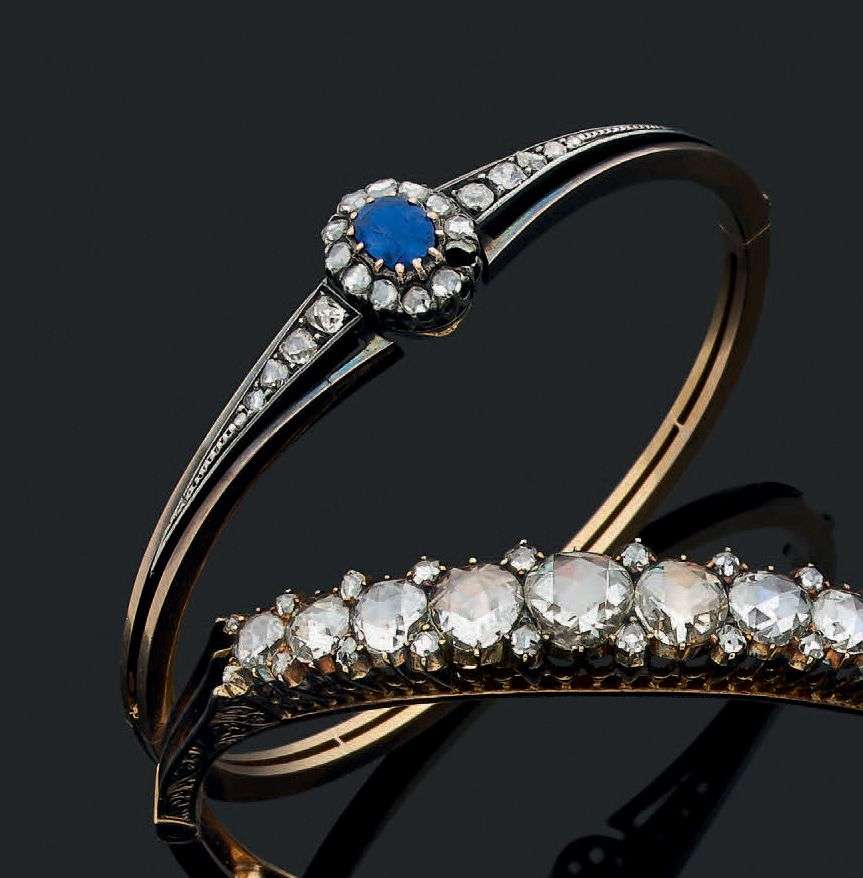 Saphir ovale, diamants taille rose