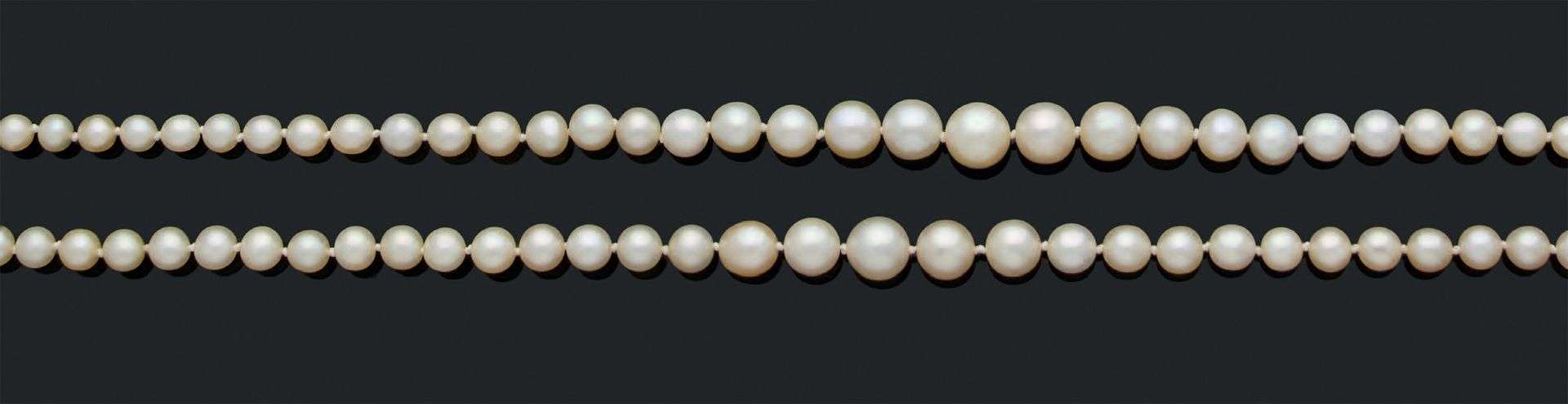 Chute de deux rangs de 145 perles fines et 7 perles de culture