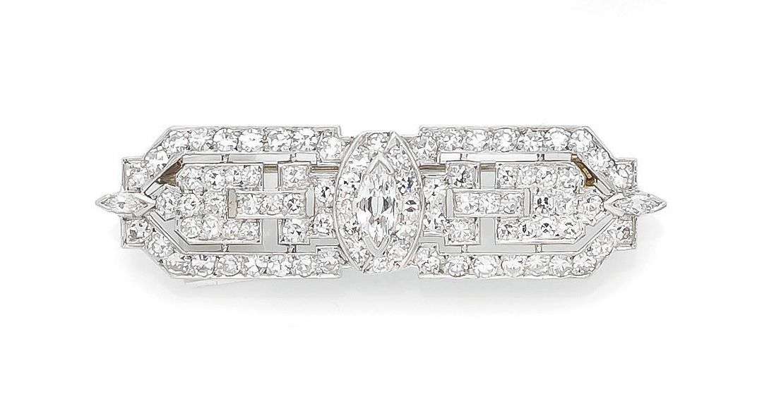 A diamond, platinum and gold brooch