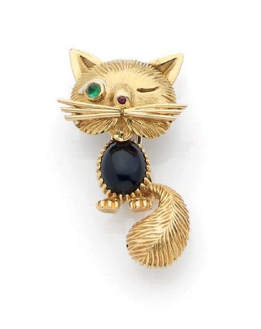 An onyx, emerald and gold, clip, signed