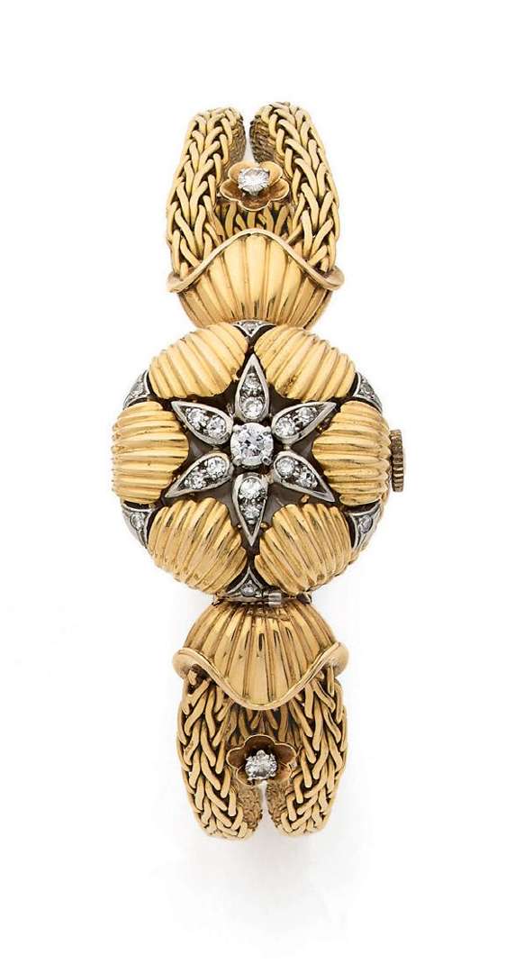 A diamond and gold wristwatch