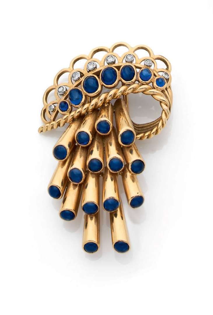 Saphirs cabochons, diamants ronds