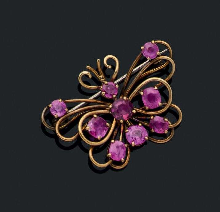 A sapphire and gold brooch, signed