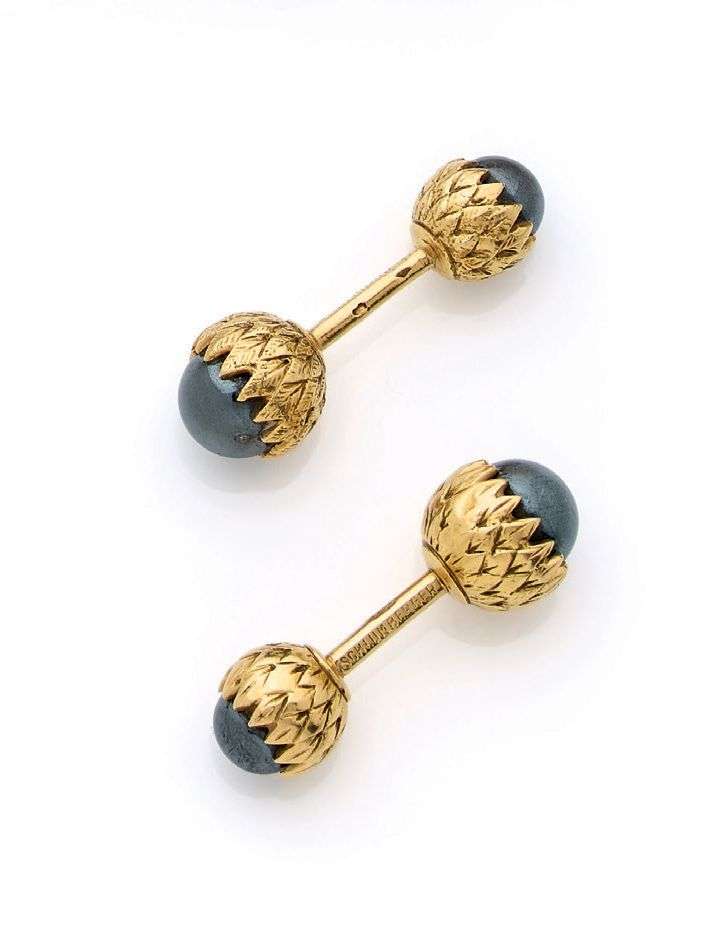 PAIRE DE BOUTONS DE MANCHETTES Hématites, or 18k (750)